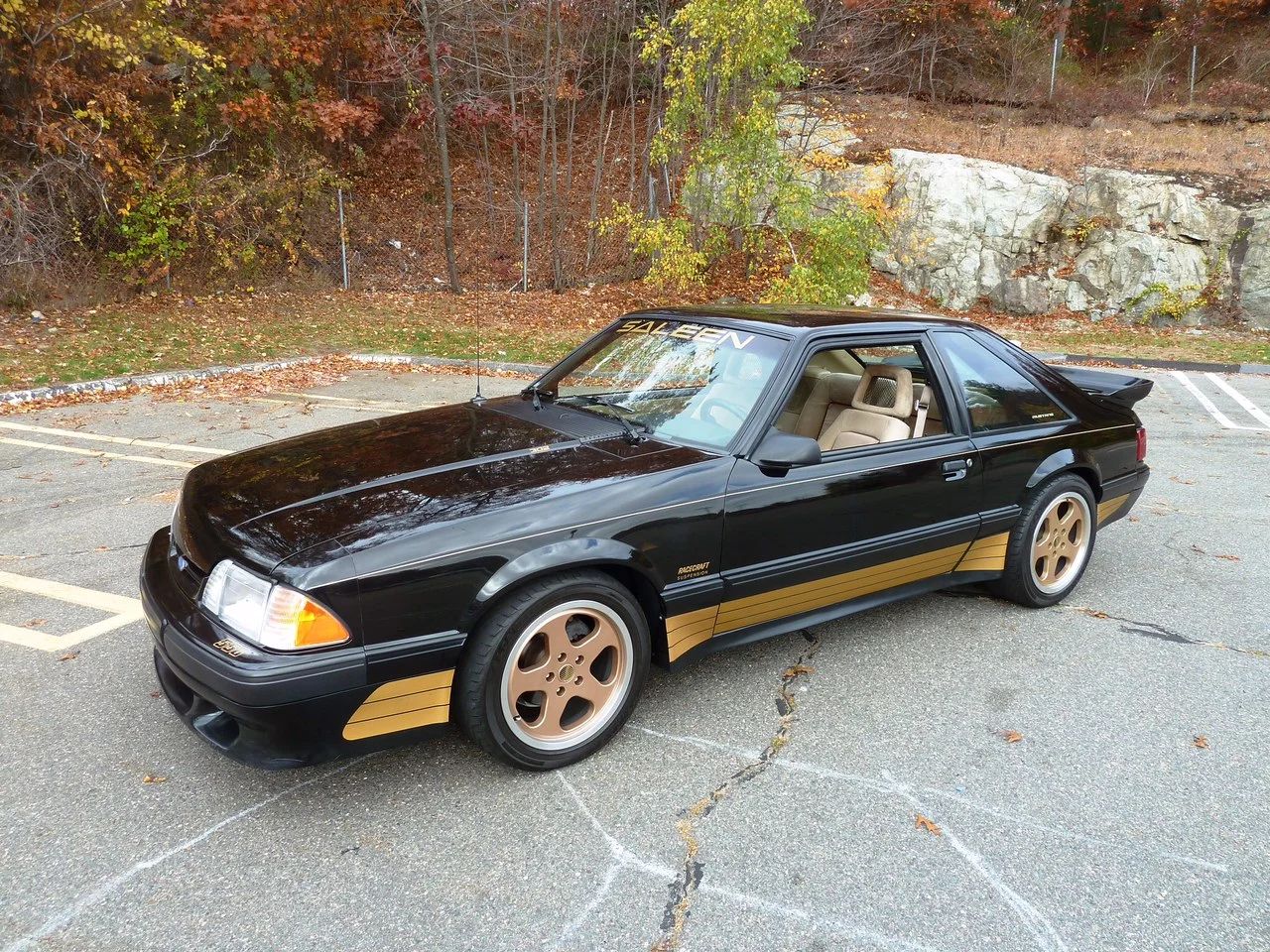 Robert Lewis '88 carries this pedigree. Shipping from Saleen Autosport on June 9, 1988. Number #0566 coming with gold graphics, and the beige interior make it 1 of 17 in 1988. Robert's '88 sold new 5/17/88 at Basil Ford in Buffalo, New York according to Saleen records. Robert acquired the car in May of 2014, and despite having only 67k original miles, she had seen better days. Robert set to work on the car going through all of the mechanicals first. Having sat for many years, much attention was needed to replace dried up seals, and other aged parts. The interior was in pretty good shape, considering the rest of the car. After hours of scrubbing and steam cleaning, she looks as good as new. The paint was another story, and presented a major challenge for Robert. Anyone who ever owned a car with factory decals knows what a bear they can be to work around. Taking great care to preserve the decals, the car was wet sanded and buffed back to the slick finish you see here. Yes, that is original paint on her flanks. The wheels were in great shape, thankfully due to being ultra rare Speedlines from the early Saleen catalog. If you've ever tried to find a set of these wheels, you already know why.
