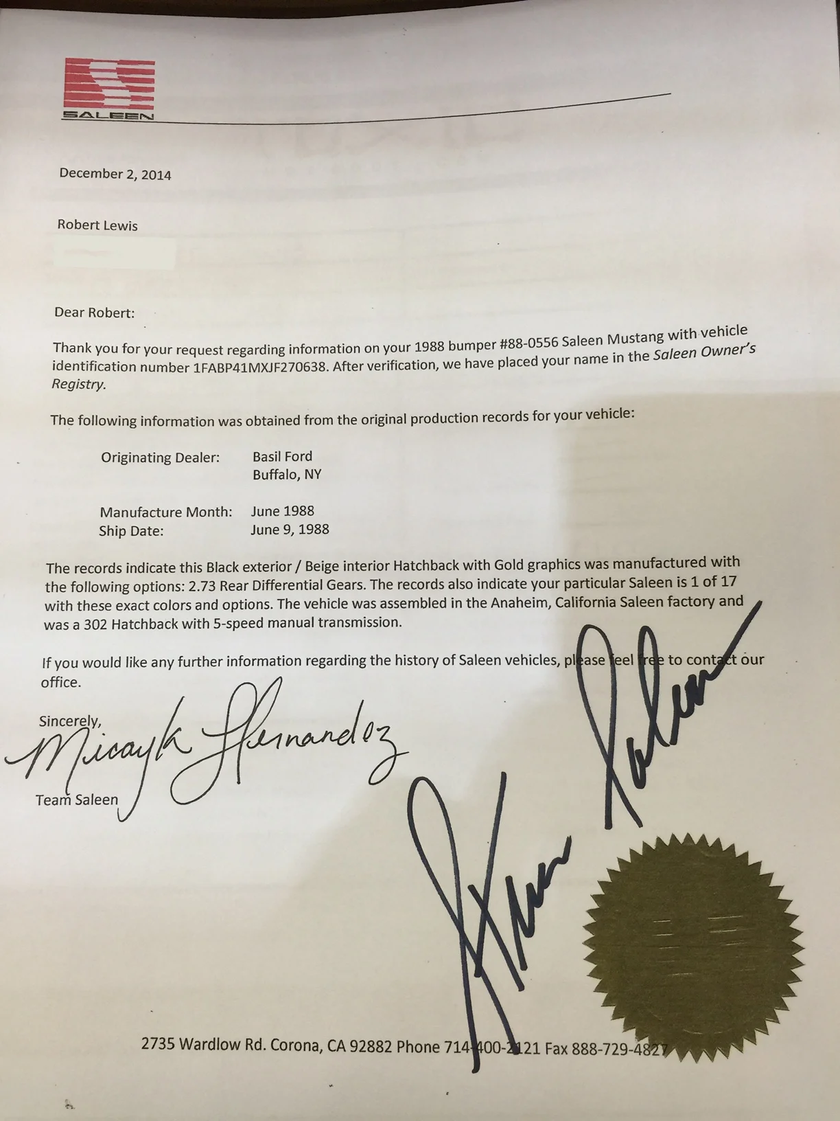 Bob Lewis '88 Saleen