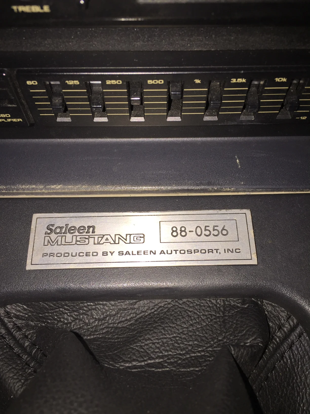 For 1988 there were a few changes in equipment and options. Now all cars wore Monroe shocks, the Saleen 170 MPH speedometer, and a new for '88 rear valance. The Pioneer KEH-6050 cassette deck (remember those) was new as well, and below that was a Pioneer BP880 graphic equalizer to control the six speakers. The prior year (1987) Saleen had added several upgrades to the cars, including five lugs, and four wheel disk brakes. This change solved another major shortcoming of the fox body Mustangs, and brought them out of the stone age in the braking department.