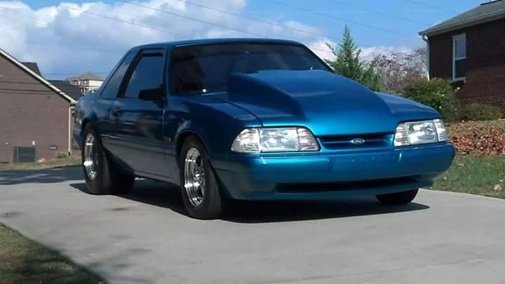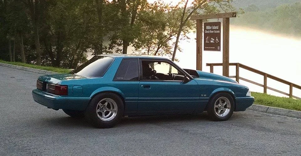Buddy doesn't do anything halfway. Splitting his time between motocross, rock crawling, and this seven hundred horse coupe; pushing the envelope is what he does. Whether he's jumping hills, navigating trails, or laying two hundred foot long black marks on the pavement; balls to the wall is how he rolls. The car has come a long way, going through several different combos to arrive at its current state of awesome. Looking over the final results of his hard work, we have to tip our hats to a job well done. The '93 Cobra Teal paint, classic notchback lines, blown Windsor under the hood, and tucking those big 325s is just perfection in our book. On the streets of East Tennessee boy racers are on notice; pass quietly by the Teal coupe. CR