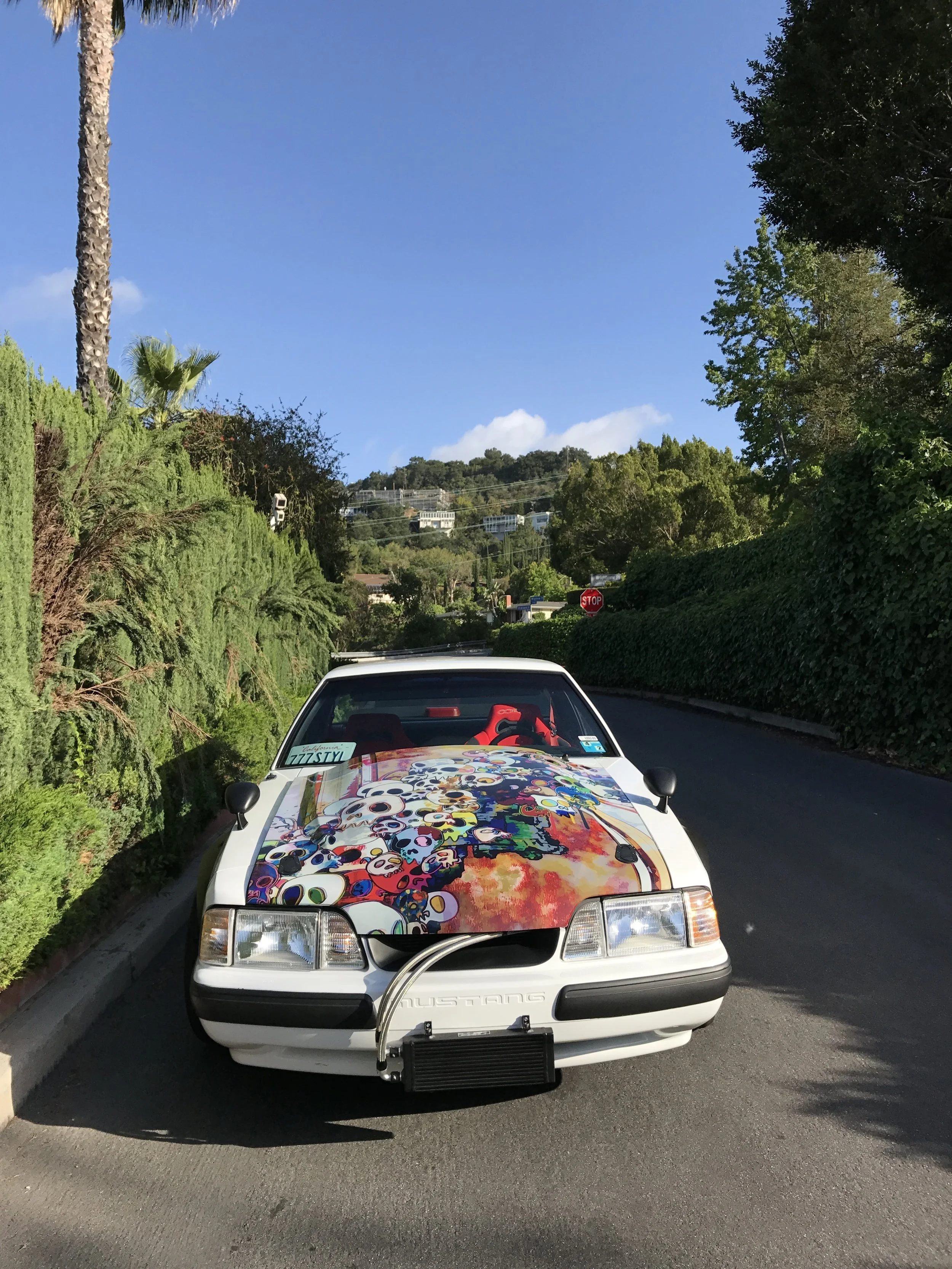 Other exterior notables are the front mounted oil cooler, which was a trend for '70 Japanese sports cars, and while it takes some getting used to; it sets the car apart. Next up is the hood mural, which is actually a wrap, and was done by Ron's favorite artist; Takashi Murakami. The fender mounted mirrors also tie into the Japanese look, and add even more detail to the build.