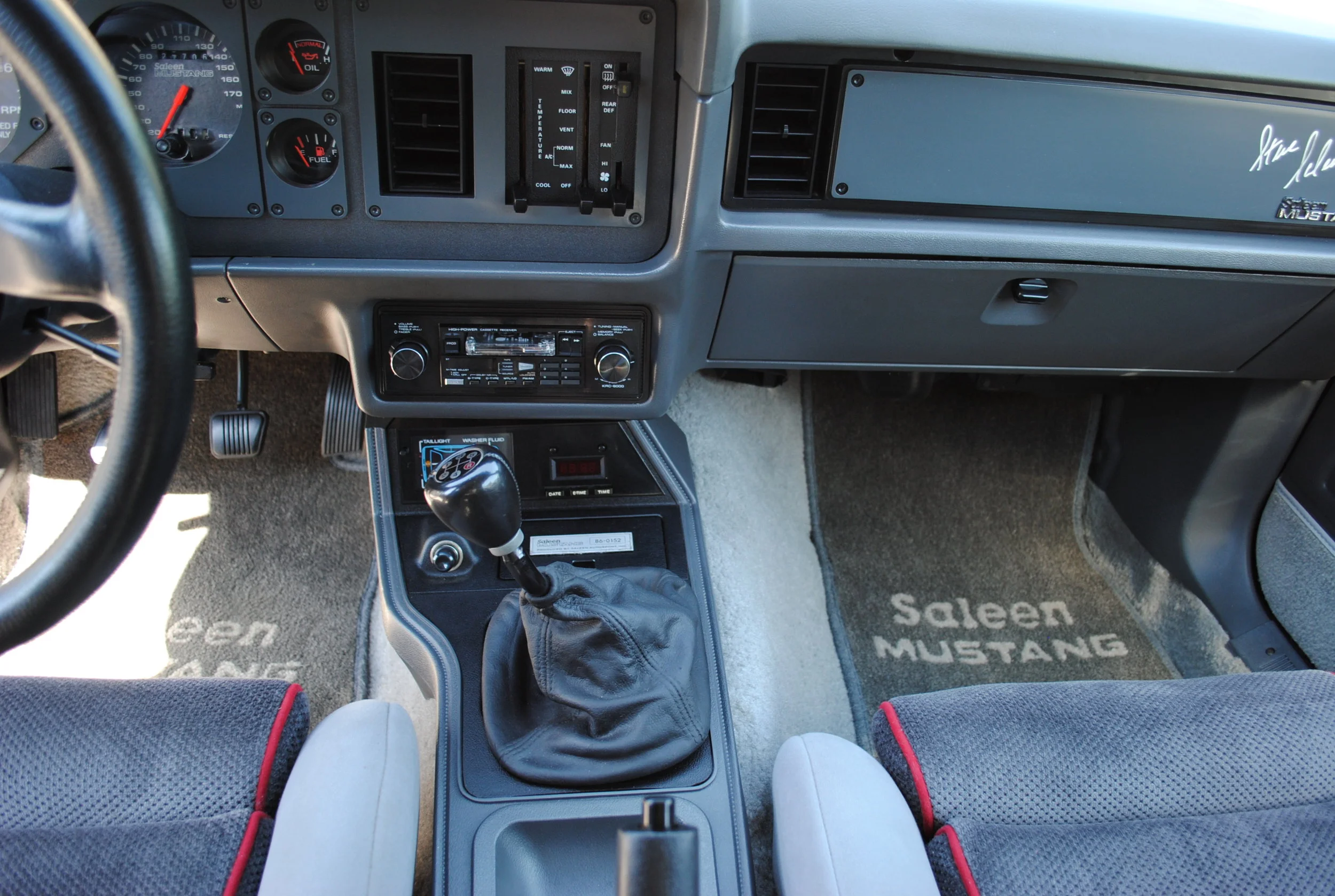 Scott is proud to say that he actually gets the car out and enjoys it. "Not a museum piece, but a solid, unmolested example that sees the light of day, instead of being tucked away in the garage" says Scott. Luckily, #152 was owned by a solid list of Saleen lovers and collectors, which have preserved the car extremely well over the years. Having all of the documentation from the dealer, and DMV registrations, as well as the manuals from kenwood, Ford, and Saleen. Listed as one of seven cars produced in this combination, this four eye Saleen is fox body Mustang history. CR