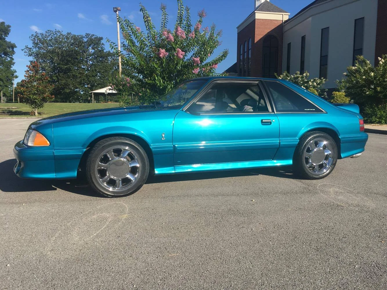Ben writes: “After the kids had left the nest I started my search for the Mustangs that I had long admired. The list was long and a couple weren't going to be easy to find but the search is part of the fun. The list included mainly Fox bodies. I had already found a very low mileage 1986 Comp. Prep SVO so my attention now turned to the 93 Cobra's. The R was out of my price range, but I found a red high mileage 93 Cobra for a very good price, for a daily driver. It would serve me well. I had always loved the Teal 93 Cobra's and thought that would bookend the red daily driver in the garage really well. “