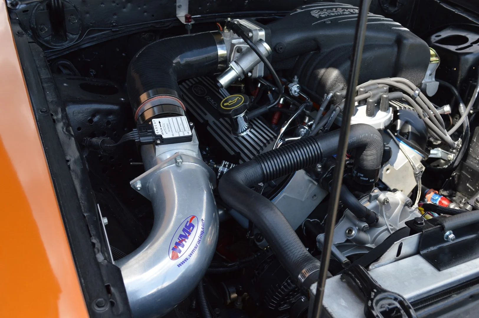 The '86 you see before you was actually one of the first cars to compete in the NASA Camaro vs. Mustang challenge when it began in '01. The build began by grafting in a Maier Racing wide body kit. Up next was a Steeda Aero spoiler that was flushed into the hatch, giving the rear an ultra smooth look. Up front a HO Fibertrends hood was bolted down, and a Meier Racing lower valence with brake cooling ducts round out the nose. The glass is custom cut lexan to save weight, and the FRPP '95 Cobra R wheels meet NASA standards, and provide clearance for the Cobra spec brakes.